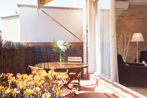 • Apartamento con terraza privada (mesa y sillas).